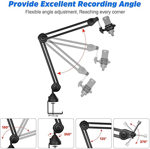 ♬♬【Einstellbarer und klappbarer Arm】– Mit zwei um 360 ° drehbaren klappbaren Armen, passend zum schwenkbaren Tischständer und Mikrofonständer, können Sie das Mikrofon einfach in die beste Position einstellen. Geeignet für Live-Streaming, Videoaufnahme, YouTube / Facebook, Voiceover , Aufnahmestudio, Fernsehsender, Bühnen- und Familienaufführungen usw.