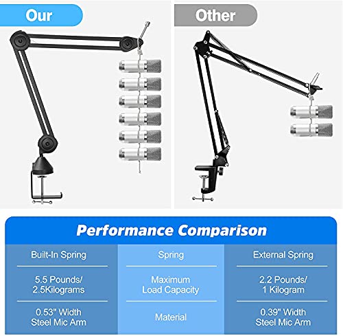 ♬♬【Schwerlast-Design】– Der Mikrofonständer ganz hochwertigem Stahlrahmen mit robusten Federn, Zinklegierungsständer und stoßfester Antiblockiersystem-Kunststoff-Cliphalterung ist robust und langlebig. Die stabilen Stativbeine ganz Stahl verteilen das Gewicht des Ständers und verleihen Ihrem Mikrofonständer eine bessere Tragfähigkeit. Max. Belastung: 6,6 lbs/3kg, Stärkere Tragfähigkeit als andere.