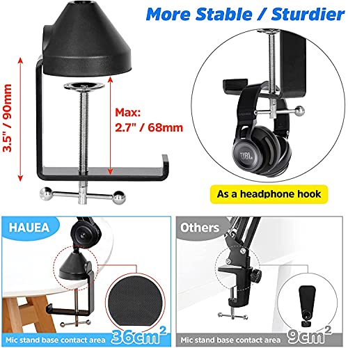 ♬♬【Stabilität und Sicherheit】– Wird mit einer Tischbefestigungsklemme und einer verstellbaren Positionierungsschraube geliefert, die Montagebasis ist 4x größer, um sie problemlos an jedem Schreibtisch mit einer Dicke von bis zu 60 mm zu tragen. Darüber hinaus ist der Kopfhörerhaken in den Befestigungsclip integriert (mit weicher Matte oder Gummiunterlegscheibe hinzugefügt, um Schäden an Ihren Möbeln zu umschiffen). ♥♥ das Mikrofon auf den Bildern NICHT ENTHALTEN!