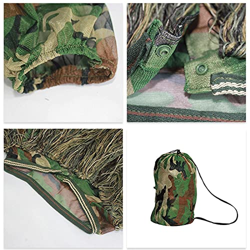 Paket beinhaltet: Dieser verheißungsvolle Anzug enthält Jacke, Hose, Kapuze, Tarnseil und Netztasche. Wird mit einer Tragetasche geliefert, Sie können den Tarnanzug zusammenrollen und in die mitgelieferte Tasche stecken.