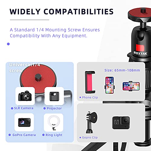 Mini Stativ, ROXTAK Selfie Stick Telefonstativ, Tragbarer Projektorstativ aus Aluminiumlegierung mit 360 ° drehbarem…