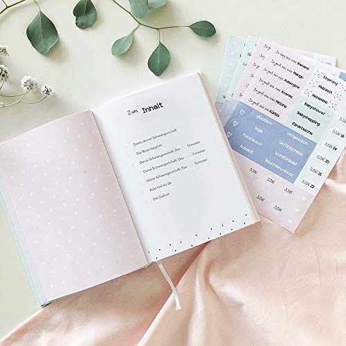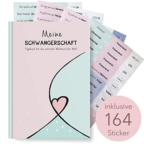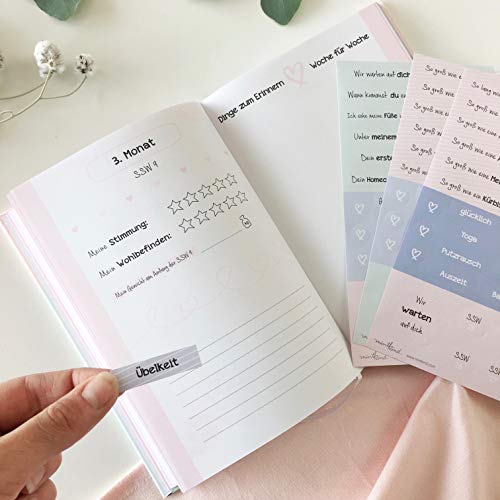 MINTKIND® „Meine Schwangerschaft“ Schwangerschaftstagebuch mit passendem Stickerbogen Set I Hardcover Tagebuch zum Eintragen I Geschenk für Schwangere und werdende Mütter