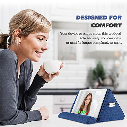 MoKo Tablet Kissenständer, Samt Halter für bis 11″ Tablet, Halterung für eReader Kompatibel mit iPad Air 5 10.9/Air3, iPad 10.2 2022, iPad Pro 11/10.5/9.7, Mini 5, Galaxy Tab S9/S9+/S6/S7,Marineblau