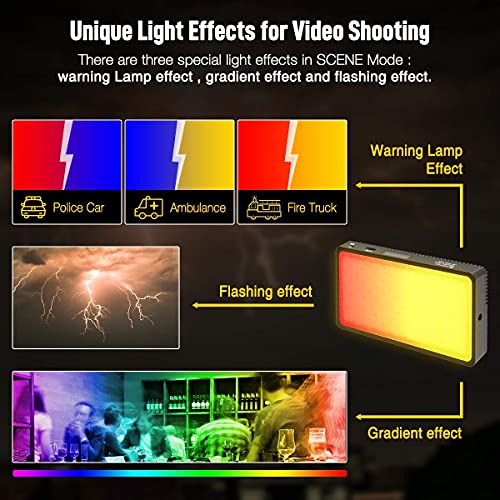 【Einzigartige Lichteffekte für Videoaufnahmen】Im SZENEN-Modus gibt es drei spezielle Lichteffekte: 1. Warnlampeneffekt, der die Lichteffekte von Spezialfahrzeugen (Polizeiauto, Feuerwehrauto und Krankenwagen) simuliert; 2. Verlaufseffekt, bezogen auf den Farbverlauf; 3. Blitzeffekt. All diese wunderbaren Lichteffekte stehen für Ihre einzigartigen Anforderungen an Videoaufnahmen zur Verfügung.