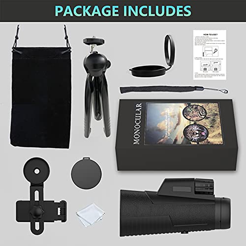 【Super High Trennung und Zerrüttung】- Unser fernrohr monokular verwendet eine FMC-Mehrschichtvergütung und ein BAK-4-Prisma mit hoher Helligkeit und99,9% Lichtdurchlässigkeit, bietet eine hervorragende Lichtquellenübertragung. Nachts kann es selbst bei schwachem Licht ein klares, hochwertiges Umwandlung bildlich darstellen.