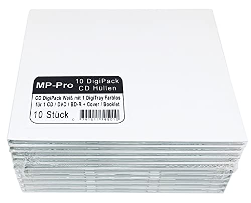 50 Leere Digipack CD Huellen ganz Karton 4-seitig weiß unbedruckt mit 1 eingeklebter CD Plastik Digitray farblos