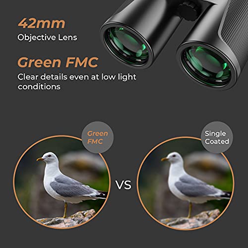 [HERAUSRAGENDE BILDQUALITÄT] Mit voll FMC mehrfach beschichteten grüner Linsen ausgestattet, um das reflektierte Licht in der Objektivlinse zu reduzieren, die die Lichtdurchlässigkeit bis zu 99,5 % erhöht, um die Bildhelligkeit und Bildschärfe zu verbessern; Professionell mit BAK4-Prismen, kann das Problem von dunkler Rand des Bild besser lösen. muson Binoculars bietet Ihnen helle, klare und farbgetreue Sicht bei verschiedenen Lichtverhältnissen von Tag bis Dämmerung.