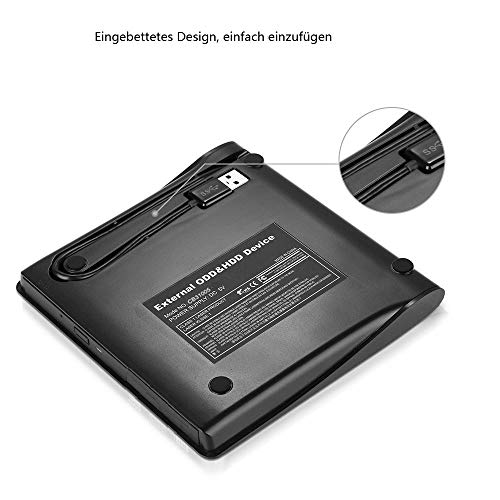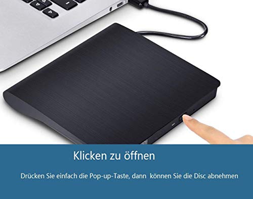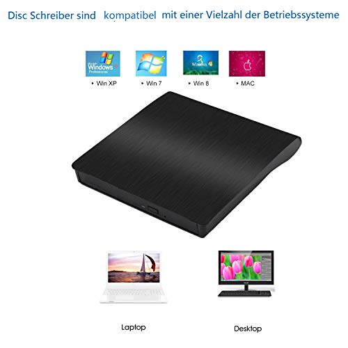 【USB3.0 SCHNITTSTELLE】- 1x USB3.0 Superspeed, was Ihnen schnellere Datenübertragungsgeschwindigkeit und stabile Performance bringt. Mit diesem externes laufwerk können Sie CDs, Musik, Videos resorbieren, Softwares installieren oder CD/DVD- Backup-Disc erstellen. Kompatibel mit USB 2.0 / 1.0.