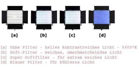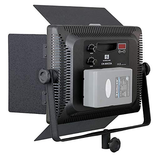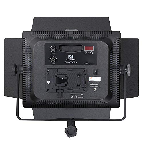 Das Bi-Color LED Light Panel CN-900 CSA von NANGUANG verfügt über 900 superhelle LEDs. Die Illumination beträgt 6025 lm. Hervorragende Farbwiedergabe mit einem HIGH CRI Wert RA>95. Farbtemperatur und Leuchtstärke können über zwei Drehschalter auf der Gehäuserückseite stufenlos im Stückchen von 3200-5400°K verändert werden. Zusätzlich können zwei Softfilter (soft und supersoft) sowie ein blauer-Filter zur Modifizierung der Lichtcharakteristik eingesetzt werden. Dadurch läßt sich die Beleuchtung optimal an unterschiedliche Aufnahmesituationen gleichsetzen. Die Lichtsteuerung wird unterstützt durch schwarze Abschirmklappen. Die Position der LED-Studioleuchte kann auf der U-förmigen Bügelhalterung bequem verändert werden. Die LED-Flächenleuchte kann sowohl über Netzkabel als vulgo mit V-Mount kompatiblen Akkus betrieben werden, wodurch sie ideal vulgo für mobile Einsätze ist. Die Studioleuchte besitzt ein Digitaldisplay sowie einen Funkempfänger und kann somit über die passende NANGUANG Funkfernbedienung (nicht im Lieferumfang enthalten) angesteuert werden.
