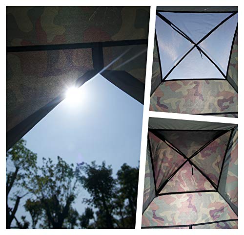 Das Camo Sturdy Set von NARMAY ist ideal für Drinnen-Spaß oder Draußen-Camping. Es besteht aus wasserabweisendem Stoff mit einer silbernen Innenbeschichtung, die vor UV-Licht schützt, und einem wasserdichten Boden, der verhindert, dass verschüttete Flüssigkeiten den Teppich zugrunde richten und Kinder vor nassem Gras trocken bleiben. Es verfügt über zwei runde Tunnelöffnungen mit Rollklappen und eine große Vordertür mit doppelseitigem Reißverschluss. Mesh-Oberseiten und -Fenster sehen nach zusätzliche Belüftung und geben Eltern einen vollständigen Überblick über das, was im Inneren vor sich geht. Wenn es regnet oder die Sonne sengt, haben wir ein Baldachin als Dachabdeckung für Kinder vorbereitet (leicht die vier Seile oben einhaken), um Regenwasser und UV-Licht zu widerstehen. Diese Tarnung, das Polyesterzelt, ist so großartig. Zwei strapazierfähige PE-beschichtete Fiberglas-Zeltgestänge mit Schockkordel unterbinden Splitter oder Abspalten bei Bruch.