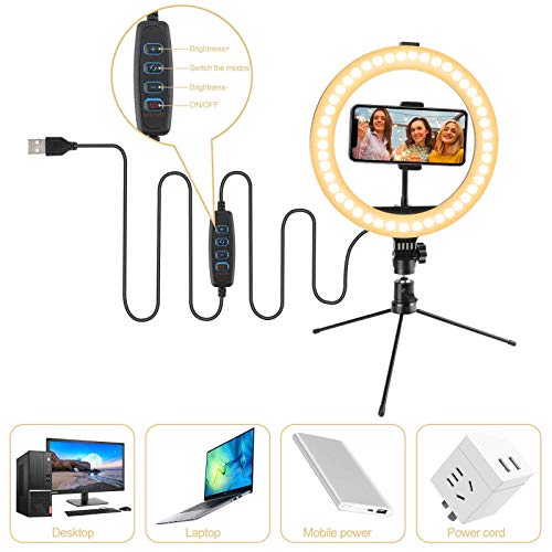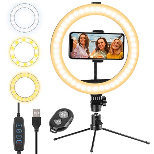 Machen Sie Ihr Live-Streaming makellos: Dieser Traktat ist speziell für Live-Streaming und Live-Übertragung, besonders angebracht für Menschen, die in der Live-Video-Industrie betriebsam sind, wie Lebensmittel-Blogger/Online-Strophe/Online-Chat/Zoom-Meetings und so weiter. Alles in allem ist es eine große Hilfe für Ihre täglichen Videos/Fotos für soziale Medien. Weich und nicht blendend, Sie fühlen keine Hitze, wenn das Licht auf Ihrem Gesicht ist, machen Sie Ihr Live-Streaming cooler. 【Wunderbarer Adlatus für Videoaufnahmen】Wenn Sie ein Video machen oder mit Ihrer Familie und Freunden chatten, besonders wenn Sie Social-Media-Videos zu Hause machen, gibt es vielleicht niemals genug Licht, immerhin mit diesem Ringlicht wird Ihr Video heller, Ihr Gesicht wird klarer sein, egal wie es Ihre Schönheit gründlich! Stromversorgung über USB-Ports: Stromversorgung über einen USB-Port und nach Maß für viele USB-Geräte, wie Powerbank/USB-Ladeanschluss/Computer-Host/Laptop und so weiter. Sie können es kontinuierlich ohne Zeitbegrenzung verwenden. Das Netzkabel ist lang genug für den täglichen Gebrauch zu Hause, Sie können es ganz einfach nach Ihren Bedürfnissen bewegen. 【Nasam-Ringlicht selbst】25,4 cm LED-Ringlicht wird mit einem Stativ-Ständer, einer Telefonhalterung und einer Bluetooth-Fernbedienung geliefert. Die Bedienungsanleitung (evtl. nicht in deutscher Sprache) zeigt Ihnen, wie Sie es zusammenbauen und hinterlegen. 10 einstellbare Helligkeit, 3 Farben der Lichteffekte: Warm/Weiß/Natur.