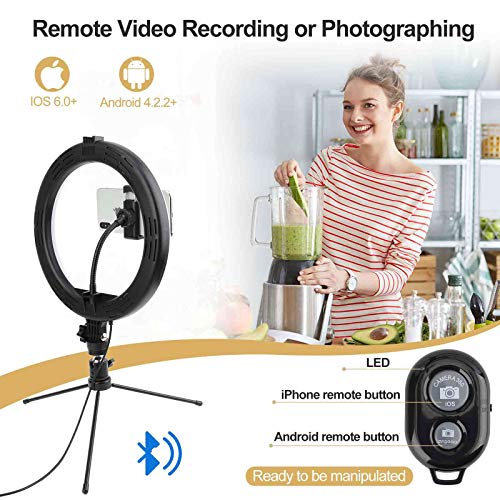 【Nasam-Ringlicht selbst】25,4 cm LED-Ringlicht wird mit einem Stativ-Ständer, einer Telefonhalterung und einer Bluetooth-Fernbedienung geliefert. Die Bedienungsanleitung (evtl. nicht in deutscher Sprache) zeigt Ihnen, wie Sie es zusammenbauen und hinterlegen. 10 einstellbare Helligkeit, 3 Farben der Lichteffekte: Warm/Weiß/Natur.