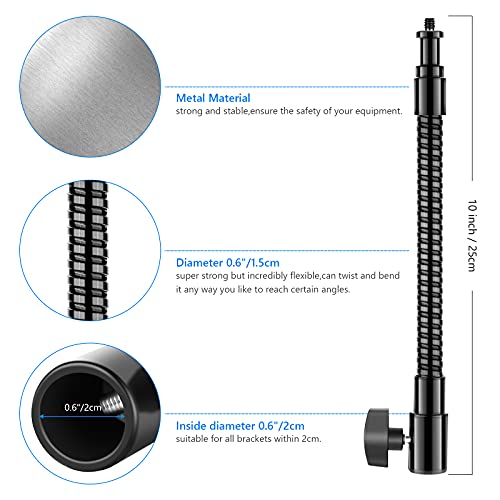 Neewer® 10″/25cm Metall Flexibel Rohr Arm für LED Video Licht, Ringblitz Beleuchtung und andere Zubehör für Fotografie mit 1/4″ Schraubengewinde