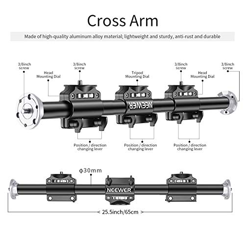 4 Montagekopf mit 3/8-Gebühr Schraube: Der Querarm verfügt über zwei frei verstellbare Montageköpfe, die mit einem drehbaren festen Knopf ausgestattet sind, der das Abstützen der großen oder schweren Ausrüstung am Arm erleichtert. 4 Montageköpfe verfügen aufgebraucht über 3/8″ Schrauben zum Anschluss an externe Feldmonitore, magische Arme, Laptop Tabletts und andere Geräte, um verschiedenen Aufnahmeanforderungen gerecht zu werden