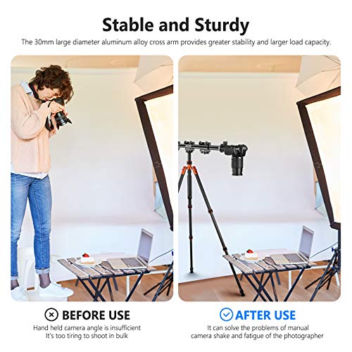 Zäh und robust: Der Querarm jeder Aluminiumlegierung mit 30 mm großem Durchmesser bietet mehr Stabilität und Tragfähigkeit. Die Tragfähigkeit beträgt bis zu 5 kg und die Länge beträgt 62 cm. Es kann die Probleme des Verwackelns bei einer manuellen Verwendung der Kamera und der Ermüdung des Fotografen losschnallen