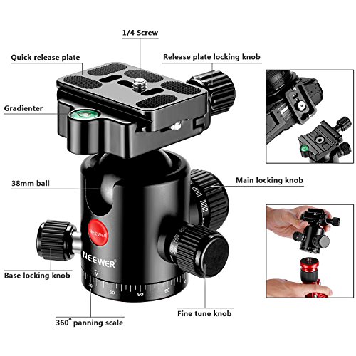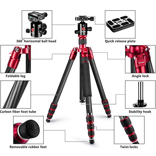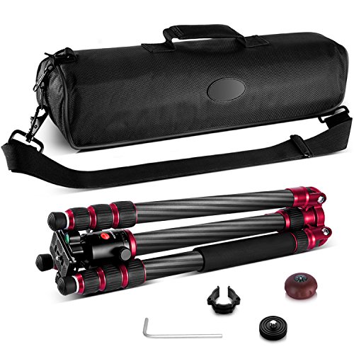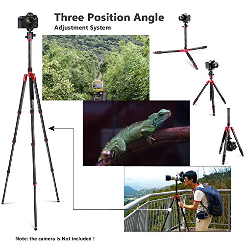 Die Tragetasche ist groß genug für die Bequemlichkeit. 360-feiner Unterschied-Wahlschwenkkugelkopf mit Wasserwaage bieten Ihnen einen Panoramablick . Drei Beinwinkelverstellung ermöglicht ein flexibles Abfeuern.
