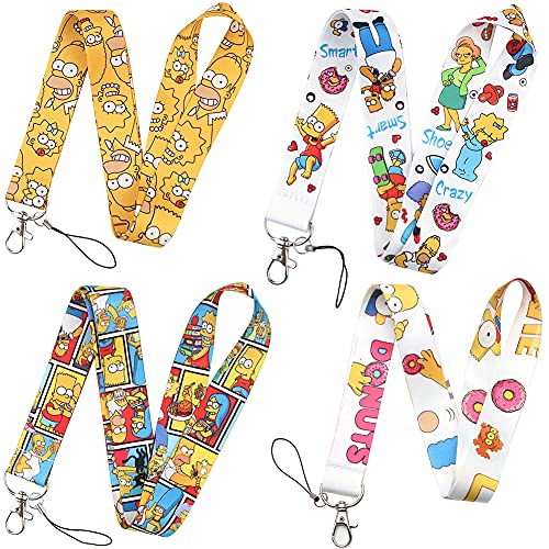 Nesloonp 4 Unvollendetes Schlüsselband Umhängeband, Die Simpsons mit hochwertigem, Zweiseitiger Auflage in Vollfarbe Ausweishülle Lanyard Schlüsselanhänger für Zugangskarten,Schlüssel, Kamera Gurt,Handy Band