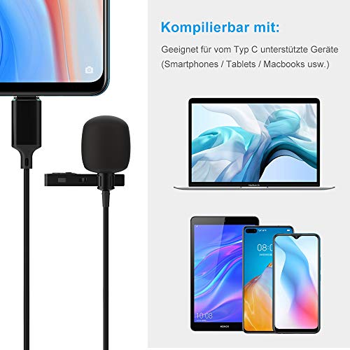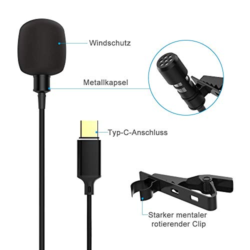 Das omnidirektionale Lavalier-Mikrofon mit USB Typ-C-Anschluss macht es äußerst bequem beim Anschließen an ein USB-C-