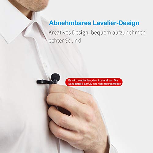 [Hände frei Design] Mit dem Ansteckclip können Sie das Mikrofon in den Kragen und die Knöpfe Ihres Hemdes stecken und Ihre Hände frei machen, wenn Sie YouTube-Kanäle oder Vlogs resorbieren.