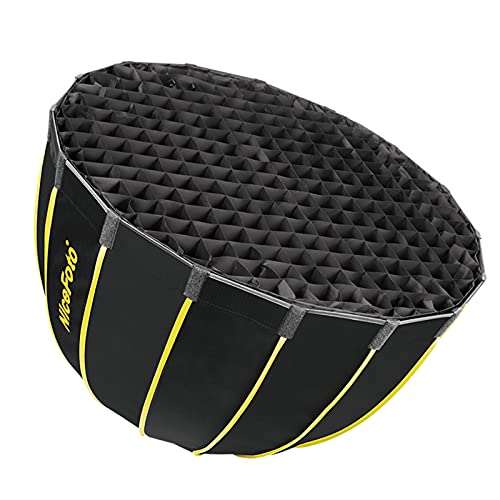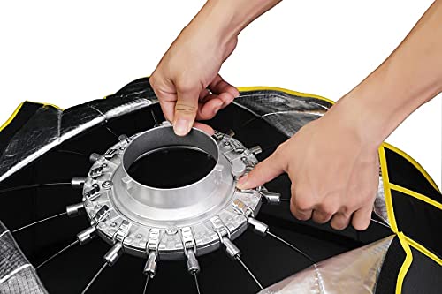 ★ Deep Dome Design, 90cm / 35,4″ Softbox mit Wabenraster, Durchmesser: 120cm, Abgrund: 80cm, Faltmaß: 100cm, Gewicht: 6,4lbs / 2,9kg, Hexadecagon Design macht das Licht gleichmäßiger denn Octagon, Deep Mouth Parabel Design, gleichmäßiger Lichteffekt, weichere Beleuchtung.
