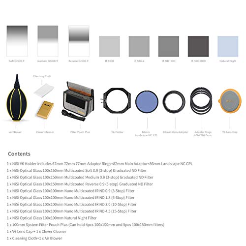 1 x NiSi V6 Holder includes 67mm 72mm 77mm Adaptor Rings+82mm Main Adapter+86mm Pro CPL