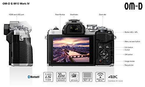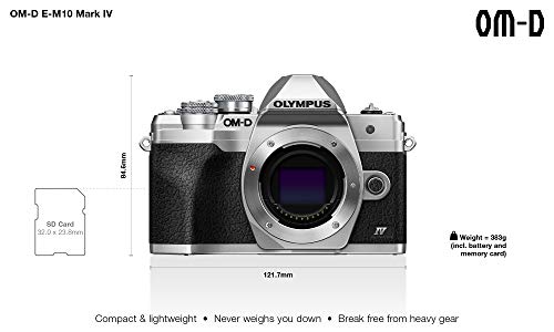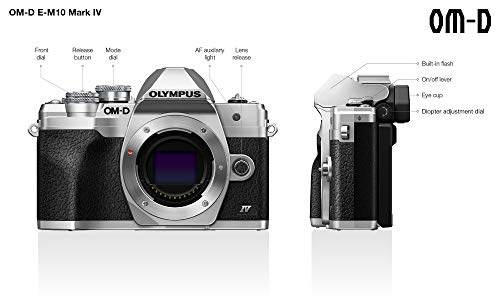 Die E-M10 Mark IV ist eine High-End-Kamera, die ein formschönes Gehäuse mit technischer Perfektion verbindet. Das Gehäuse ist mit dem ersten herunterklappbaren LCD-Monitor der OM-D-Nachfolge ausgestattet, der unkomplizierte Aufnahmen von Selbstporträts sowie von Bildern mit hohem oder niedrigem Aufnahmewinkel unterstützt. Im Inneren des Gehäuses finden Sie einen 20-Megapixel-Live-MOS-Sensor anstelle kristallklare Bilder und die integrierte 5-Achsen-Bildstabilisation garantiert gestochen scharfe Freihand-Fotos. Der TruePic VIII Prozessor liefert eine hohe Bildauflösung in kontrastarmen Bereichen, insbesondere bei Aufnahmen mit niedriger ISO-Empfindlichkeit. In Bezug auf Wi-Fi und Bluetooth®, die in das Kameragehäuse integriert sind, kann die dedizierte Smartphone-App OI.Share verwendet werden, um aufgezeichnete Fotos und Videos mühelos an ein Smartphone zu senden oder in den sozialen Medien zu teilen. Selbstverständlich bietet Ihnen dieses Olympus Modell In Bezug auf seines extrem geringen Gewichts und der ultrakompakten Konstruktion höchste Mobilität. Tatsächlich ist die E-M10 Mark IV die kleinste OM-D von Olympus.