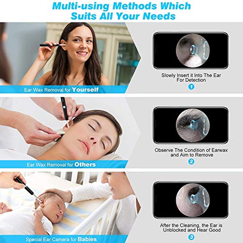 【Sichere und hochauflösende Kamera】 Ausgestattet mit dem dünnsten Objektiv mit 3,5 mm Durchmesser und 6 starken LED-Weißlichtern 1080P HD-Kamera bietet die revolutionäre 3,0-Megapixel-HD-Kameratechnologie mit Anti-Fog- und Anti-Staub-Technologie mikroskopische 360 ° -Ansichten und Weitere Details , Überprüfen Sie ganz einfach die Gesundheit der Ohren und reinigen Sie das Ohrenschmalz. Erkunden Sie von nun an die mikroskopische Welt in Ihren Ohren.