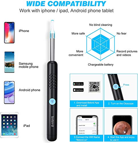 【Sichere und hochauflösende Kamera】 Ausgestattet mit dem dünnsten Objektiv mit 3,5 mm Durchmesser und 6 starken LED-Weißlichtern 1080P HD-Kamera bietet die revolutionäre 3,0-Megapixel-HD-Kameratechnologie mit Anti-Fog- und Anti-Staub-Technologie mikroskopische 360 ° -Ansichten und Weitere Details , Überprüfen Sie ganz einfach die Gesundheit der Ohren und reinigen Sie das Ohrenschmalz. Erkunden Sie von neuzeitlich an die mikroskopische Welt in Ihren Ohren.