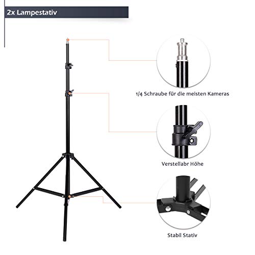 【Einfache Verwendung】Softbox 2er Set ist einfach zu installatieren.Robustes Aluminium Stativ, Höhe Von 67 cm bis max. 210 cm, mit dem stabilen Stativ lässt sich die Lichtquelle schnell auf die gewünschte Höhe anpassen