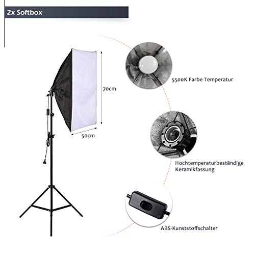 【Weiches Licht】50x70cm Softbox kann größe Fläche von Beleuchung liefern und Schatten reduzieren.28W Ledlampe kann mehr helles Licht liefern und Abdeckung kann Licht weichen,um Ihnen perfektes Beleuchtung zu bieten