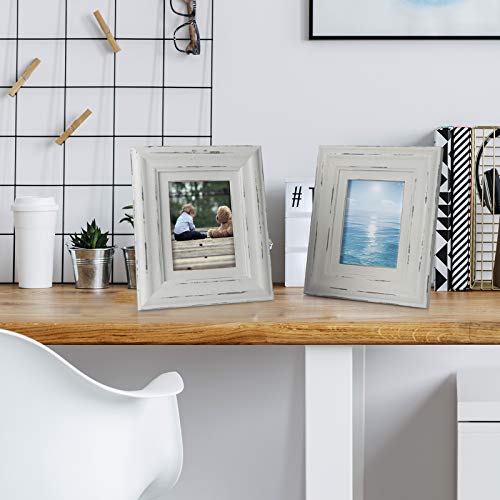 OuXean 2-teilige hölzerne Bilderrahmen 5 x 7 Weiß Rustikaler Fotorahmen Desktop/Wandbehang