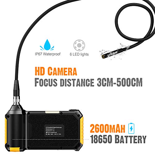 [4,3-Zoll-Bildschirm] Mit einem 4,3-Taxe-Farb-LCD-Bildschirm können Sie Ihre Aufnahmen direkt indizieren. Echtzeitmonitoring, Plug & Play, keine Notwendigkeit, eine App zu installieren oder über Wifi eine Verankerung zu Ihrem Smartphone herzustellen. Professionell und viabel, perfekt zugunsten Automobil- und Sanitärinstallationen, schwer zugängliche Inspektionen, wissenschaftliche Ausbildung und Erkundung im Freien.