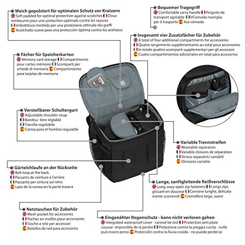 - Lieferumfang: Kameratasche, Schultergurt, wasserabweisender Regenschutz