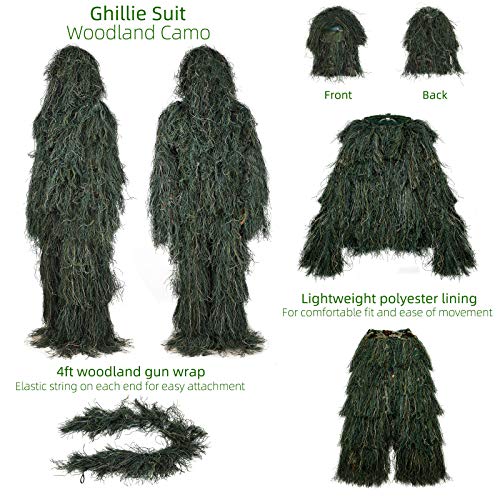 PELLOR Faschingskostüme Männer 3D Ghillie Tarnanzug, 6 Stück Set Tactics Jagdbekleidung Scharfschützenanzug, Selbsthaftend Wiederverwendbare Dschungel Woodland Camouflage Anzug Kleidung Für Jagd