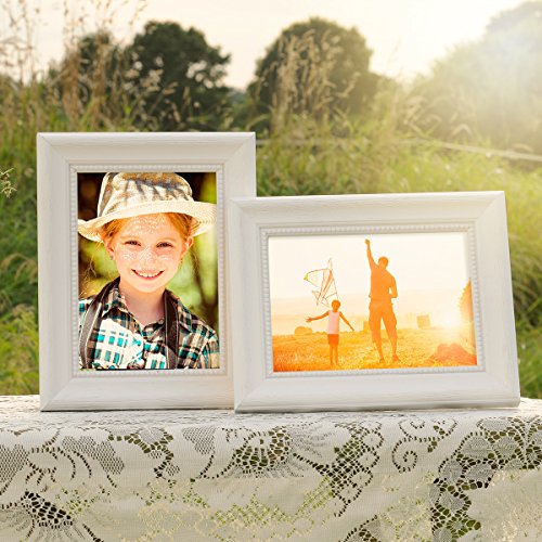 PHOTOLINI 2er Set Bilderrahmen Landhaus-Stil Weiss 13×18 cm Massivholz mit Glasscheibe und Zubehör/Fotorahmen