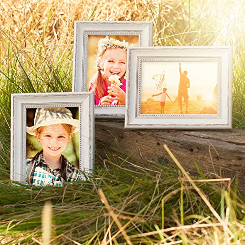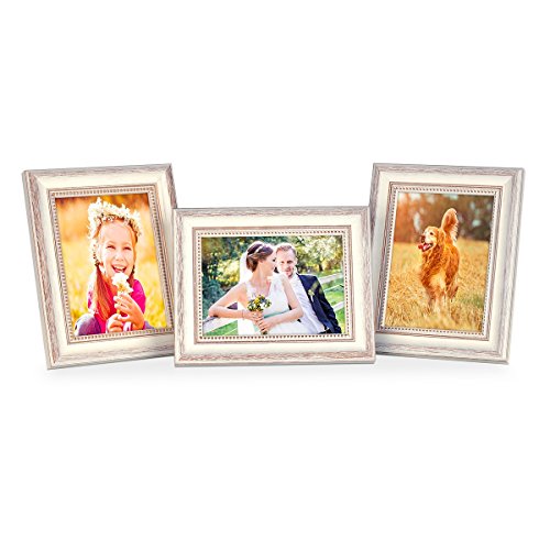 PHOTOLINI 3er Set Bilderrahmen Shabby-Chic Landhaus-Stil Weiss 13×18 cm Massivholz mit Glasscheibe und Zubehör…