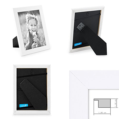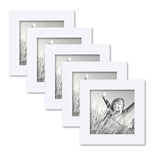 PHOTOLINI 5er Set Bilderrahmen 10×10 cm Weiss Modern aus MDF mit Glasscheibe und Zubehör/Fotorahmen
