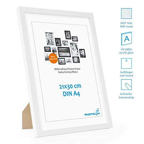 Innenmaße der Rahmen: 21×30 cm / DIN A4 (der sichtbare Bild-Ausschnitt ist ca. 1 cm kleiner), Außenmaße: 23,5×32,5 cm, Breite der Leiste: 1,4 cm, mit bruchsicherer ACRYLGLASSCHEIBE, OHNE Poster