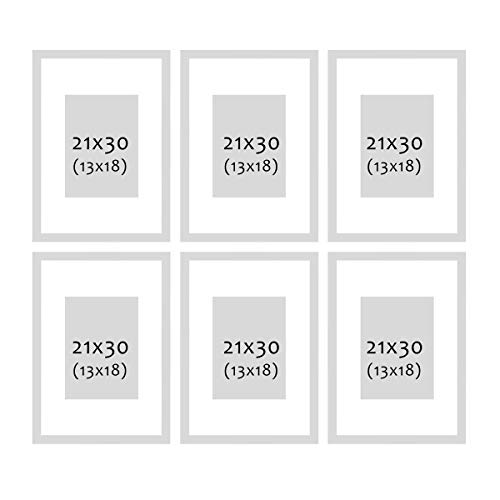 Bilderrahmen A4 21×30 cm, Weiß, 6er Set Posterrahmen, Passepartout, stabiles MDF-Holz, bruchsicheres Acrylglas, zum…