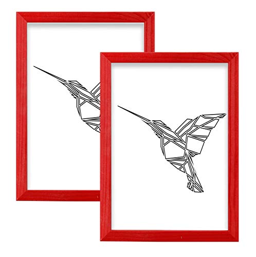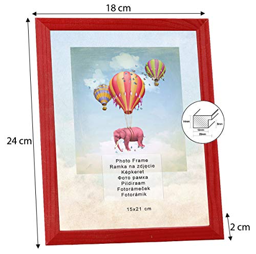 Bilderrahmen Set 2 Stück A5 15×21 cm – Farbe Rot, aus Holz, mit Acrylglas – zum vertikalen oder horizontalen Aufhängen…