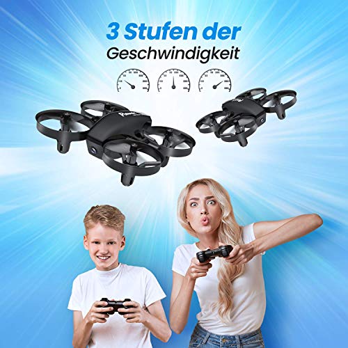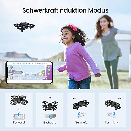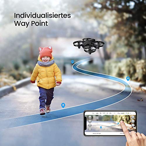 【Einfache Steuerung für Kinder】: Mit dem Fahrtbeginn oder der Landung per Tastendruck, dem Headless-Modus und der Höhenhaltefunktion können Sie die Drohne ohne Betriebsschwierigkeiten steuern. Ein stabiler Flug kann mit einem Luftdrucksensor erreicht werden. Gut für spielende Kinder.