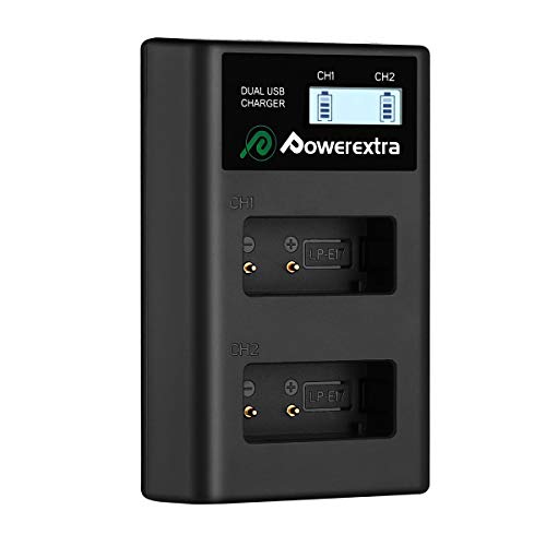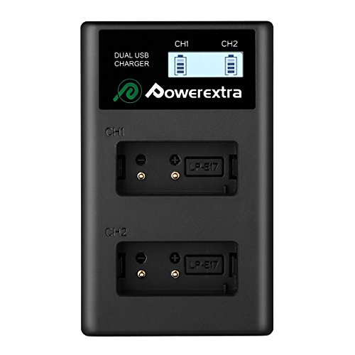 Powerextra LCD Dual Ladegerät und 2 Ersatzakkus für Canon LP-E17, kompatibel mit Canon EOS 77D, 200D, 750D, 760D, 800D…
