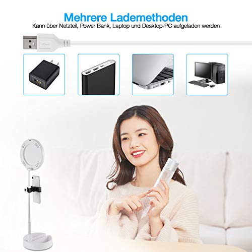 【Mehrere Ladeoptionen】 Diese faltbare Ringleuchte zugunsten die meisten Smartphones kann von mehreren Geräten als Netzteil, Power Bank, Laptop oder Desktop aufgeladen werden.