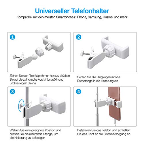 【Einstellbare Stützstange und Telefonhalter】 Die Stützstange kann von 11,8 „bis 22,8“ eingestellt werden. Der Telefonhalter unterstützt die horizontale und vertikale Platzierung. Aneignen Sie einen beliebigen Winkel
