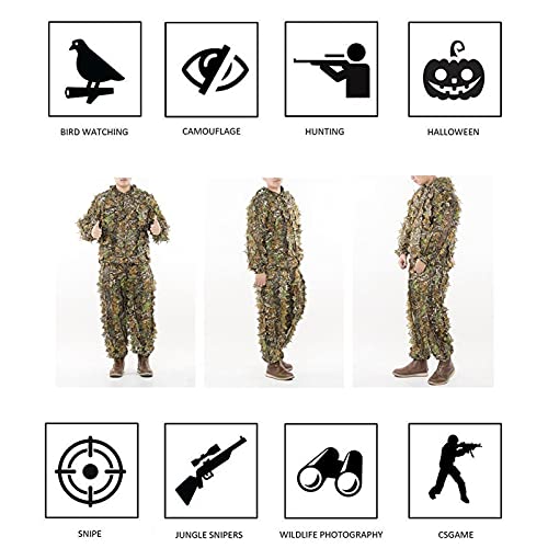 1. Dies ist ein Tarn-Camouflage, der einen günstigen Anzug mit ausreichend künstlichen Blättern auf der Oberfläche befindet, um eine gute Tarnung in Bäumen oder dunklen Umgebungen bereitzustellen.