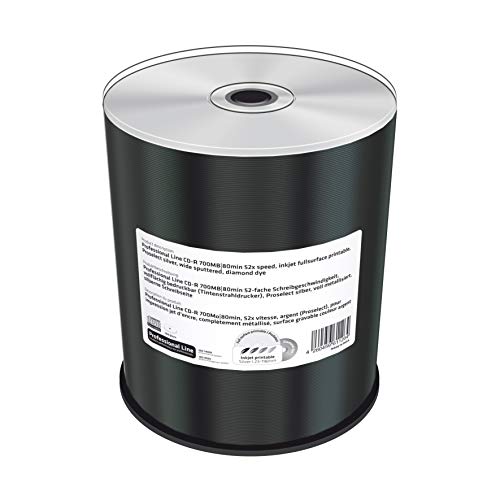 MediaRange Professional Line CD-R Medien stehen für ein Höchstmaß an Zuverlässigkeit und sind auf die hohen Ansprüche professioneller Anwender harmonisch. Durch die hervorragende Aufnahmestabilität lassen sich professionelle duplikationen, mit Schreibgeschwindigkeiten von bis zu 52x, innerhalb abzüglich Minuten erstellen. Die ausgezeichnete Kompatibilität zu Brennern, Druckern und Robotik Systemen sorgt für einen reibungslosen Ausführung Ihrer Produktionen. Unser gesamtes Professional Line Sortiment zeichnet sich durch langanhaltende Archivierungszeiten und hervorragende UV-Lichtbeständigkeit allesamt. Die zusätzlich mit einer speziellen Lackschicht versehene Oberfläche, mit einem Druckbereich von 23 -118mm eignet sich zum professionellen Tintenstrahldruck und erzielt durch die blau metallisierte Unterseite der Disc ein durchgängiges Druckbild in bester Qualität, jeder ohne farbumbrüche im Inneren Druckbereich. Durch die silberne Schreibseite unserer Medien, werden Brennspuren nahezu unsichtbar und lassen sich demzufolge von gepressten CDs nicht oft unterscheiden.