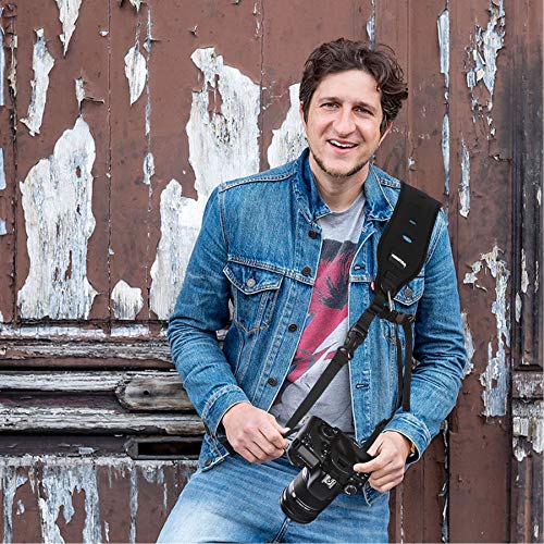 Flexibles und elastisches Material mit atmungsaktivem Design: SBR-Material mit hoher Elastizität, Neopren- und Spandex-Fasermaterial, bestehend aus einem bequemen, weichen und elastischen Schaumstoffpad, der Stress und Schmerzen beim Verstreben der Kamera reduziert. Wir haben bekannt als ein Fünf-Loch-Design am Schultergurt, das den Luftstrom und die Atmungsaktivität erhöht.