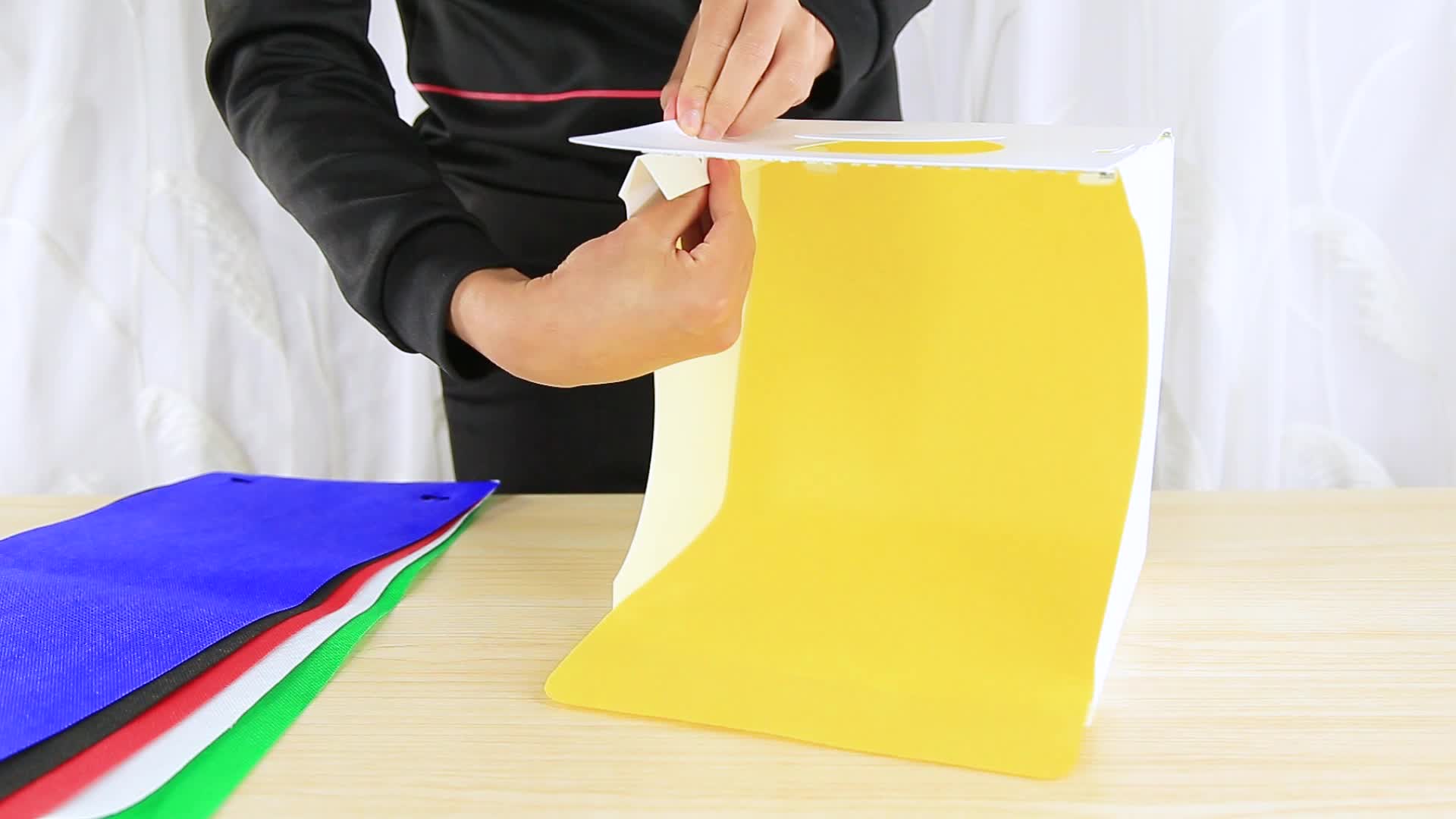 Fotokulissen-Kit: Wird mit 6 Farben Hintergrundkarton (Weiß, Schwarz, Rot, Orange, Trunken Grün) geliefert.