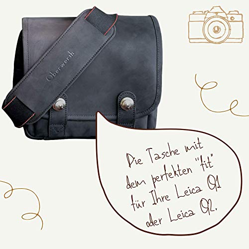 Der Name ist Programm! Die Leica Q2 Tasche Die Tasche mit dem perfekten „fit“ für Ihre Leica Q1 oder Leica Q2. Sie sitzt denn eine zweite Haut, ideal abgerundet für eine Q aka mit Handgriff. Die Ideale Leica Q Tasche für jede Gelegenheit. Ein absolutes Highlight ist das vegetabil gegerbte, in einem besonderen Verfahren gegen Wasser ablehnend präpariertes Leder. Durch hydrophobieren erhält das weiche Leder seine einzigartigen Eigenschaften. Regentropfen perlen gleichsam ab – somit ist die Q Tasche der passende Begleiter einer spritzwassergeschützten Kamera. Dieweil hat das Leder ein dem Velours nicht unähnlichen Griff und entwickelt über die Zeit eine besondere und individuelle Patina. Neben der Kamera mit den Maßen 130x80x91, 9 mm (BxHxT) ist noch genügend Platz für das Batterieladegerät, Gegenlichtblende, Kabel sowie Ihr Smartphone. Der Gurt ist jeder recycelten PET Flaschen europäischen Ursprungs gefertigt.