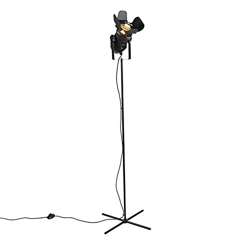 QAZQA – Industrie | Vintage | Industrie | Vintage | Stehlampe schwarz kippbar – Film | Wohnzimmer | Schlafzimmer – Edelstahl Gestreckt – LED geeignet E27